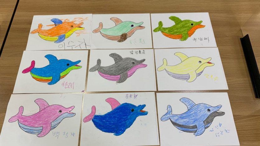 프로그램 시간에 어르신들과 귀여운 돌고래를