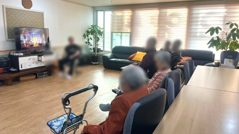 앞에 앉아계신 어르신께서 멋지게 지휘해주시고 우리 어르신들이