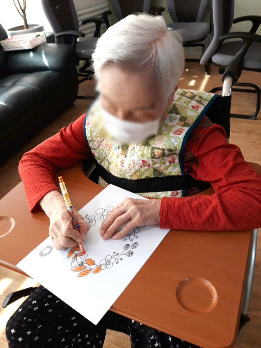 색칠하기는 창의력과 동시에 손을 움직이며 선생님들과 함께 상호작용을 하며 잔존기능을 향상하는데