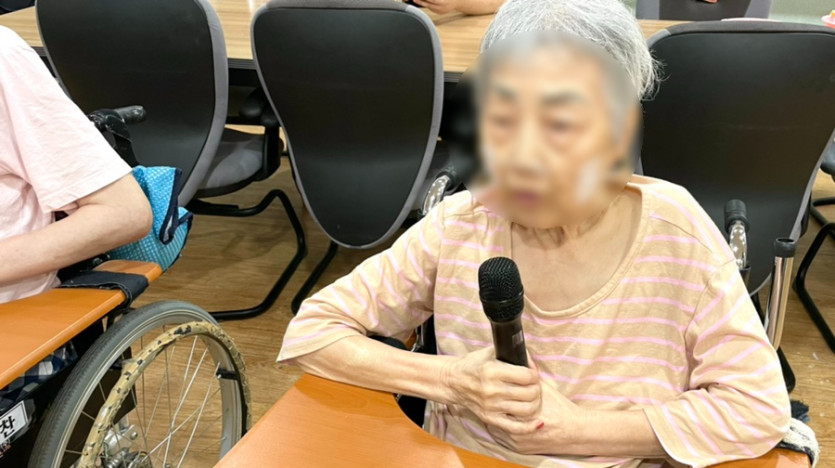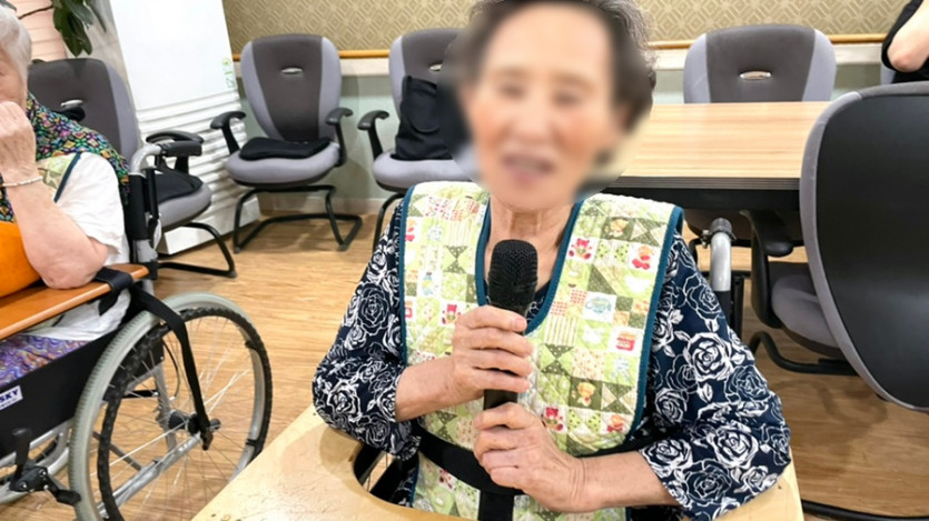 마이크를 들고 즐겁게 부르시는 어르신의 모습이 정말 아름답습니다.