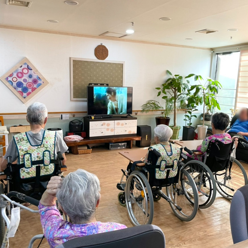 우리 어르신들 즐겨보시던 영화를 보셔서 모두 집중하시며