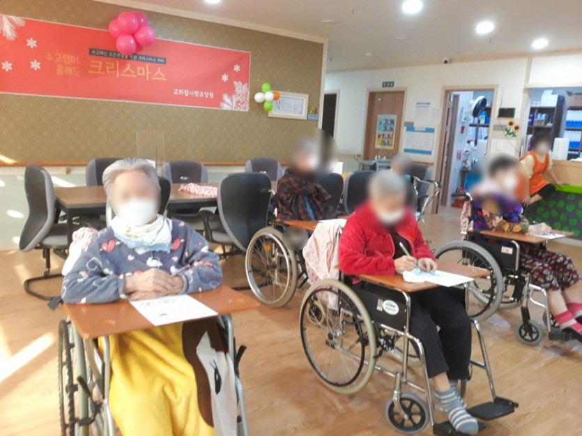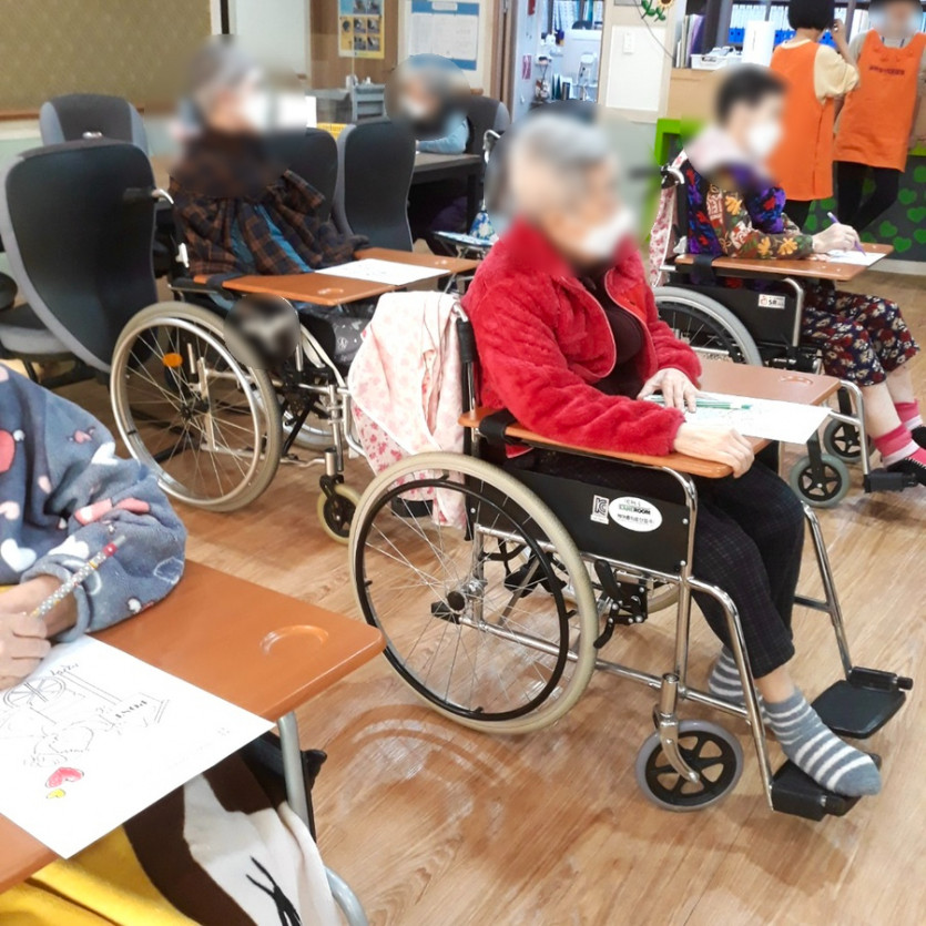 각자 보라색, 빨간색, 노란색등 좋아하시는 색연필을 고르셔서 예쁘게 색칠해주셨습니다^^