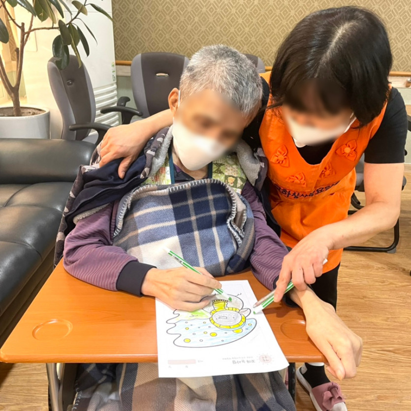 오늘은 12월 겨울을 맞이하여 어르신들과 함께 겨울 눈사람 색칠놀이 프로그램을 준비하였습니다.