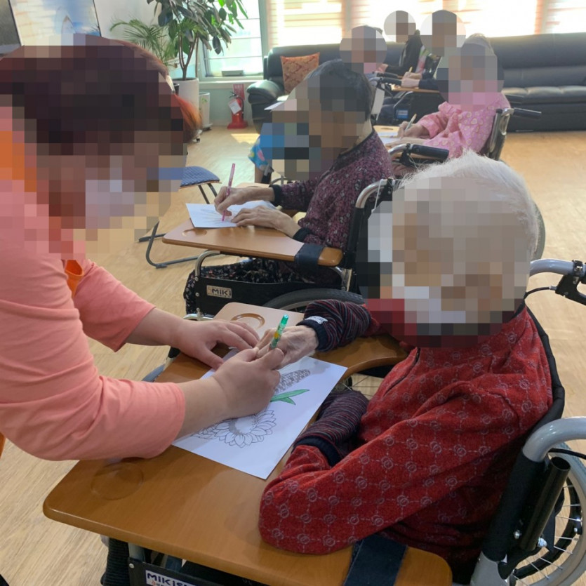 오늘은 우리 어르신들과 함께 옥수수해바라기 도안을 색칠해보았습니다.