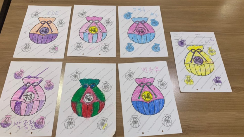 저희 어르신들과 즐거운 설날을 맞이하여 복주머니 색칠하기를 진행하였습니다.