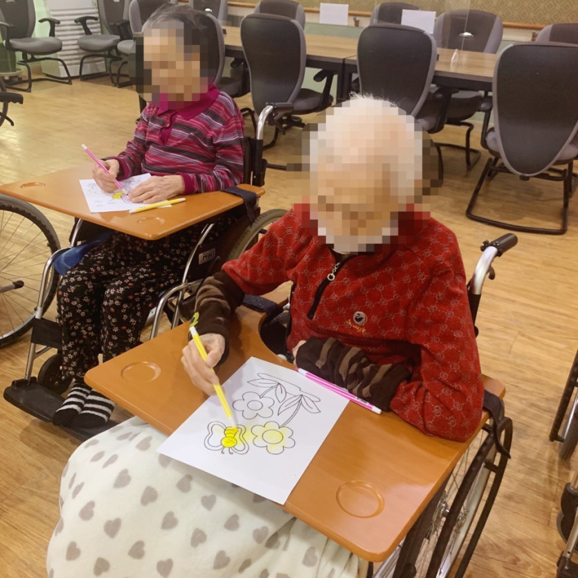 오늘은 저희 선생님들과 어르신들 같이 모여 꽃과 나비 색칠놀이 프로그램을 진행하였습니다.