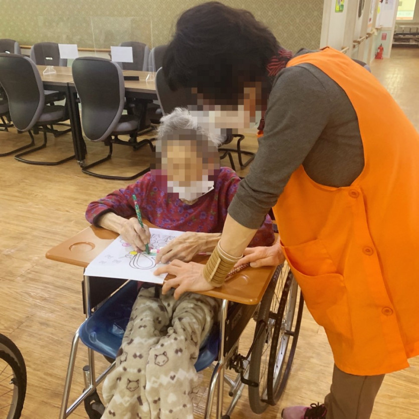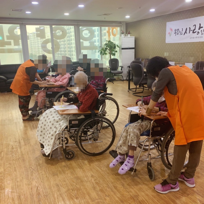 어르신들께 여러가지 색도 쓰시고 선생님들과 나눠서 색칠하는 모습을 보여주셨습니다.